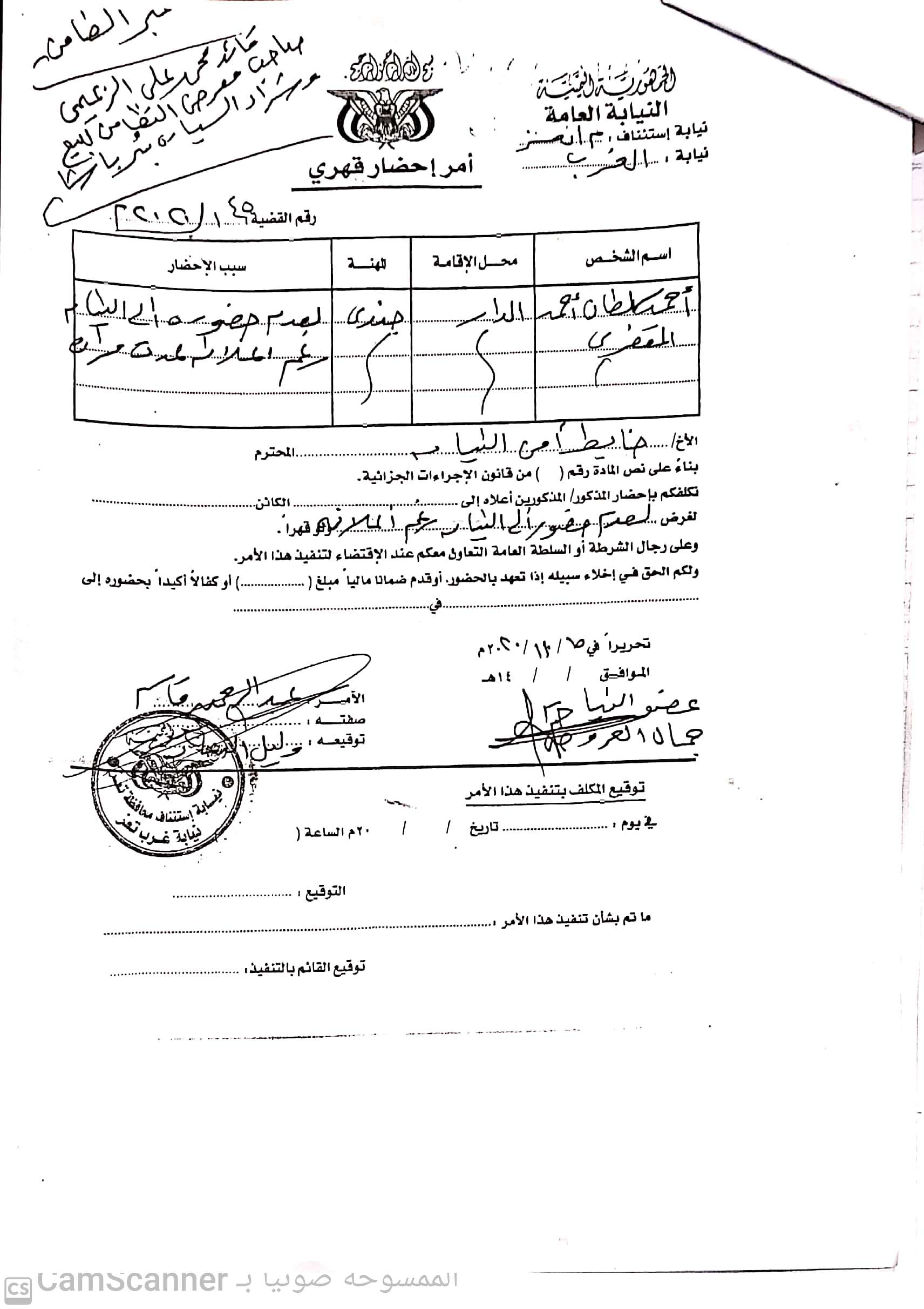 أوامر قهرية: في تاريخ 27 أكتوبر/تشرين الأول، و15 نوفمبر/تشرين الثاني2020 أصدرت نيابة غرب تعز أوامر قهرية لإحضار أحمد سلطان وأخيه محمد سلطان، لكن لا شيء تم تنفذه ولا إجراءات فعلية من قبل الأجهزة الأمنية حيث تمارس العصابة أعمال البناء على الأرضية الملوكة للمكاوي وينتشر المسلحون والملثمون والأطقم العسكرية في محيط الأرضية، في تحدي للقانون والدستور والقضاء والدولة.
